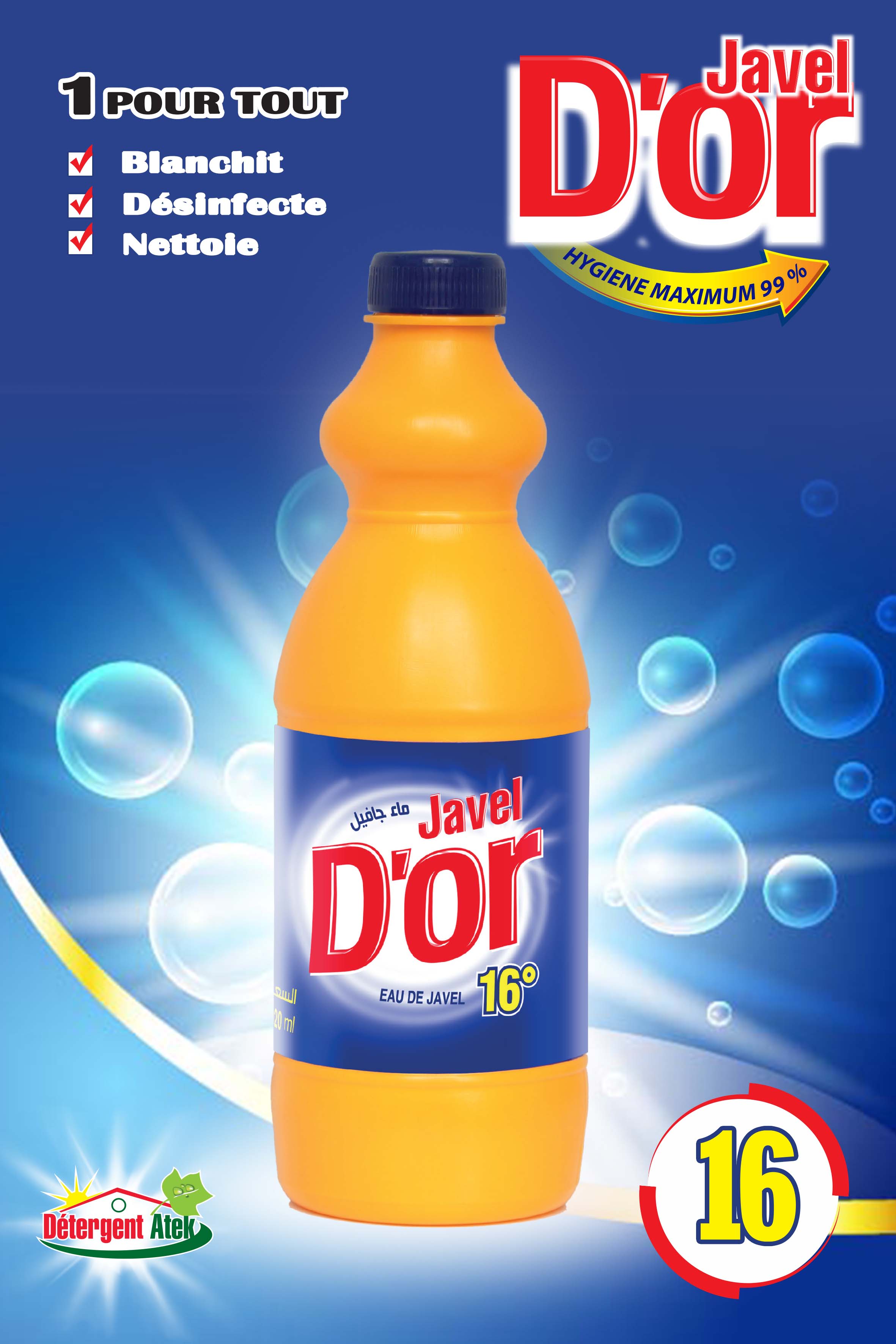 Javel D’or avec sa formule super concentré à 16° c'est un produit désinfectant,