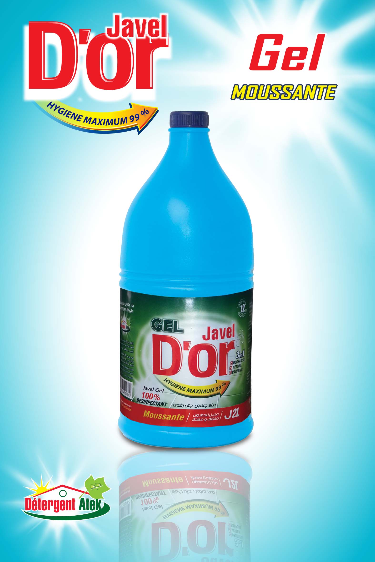 Detergent Gel javel D'or concentré specialement conçu pour le nettoyage